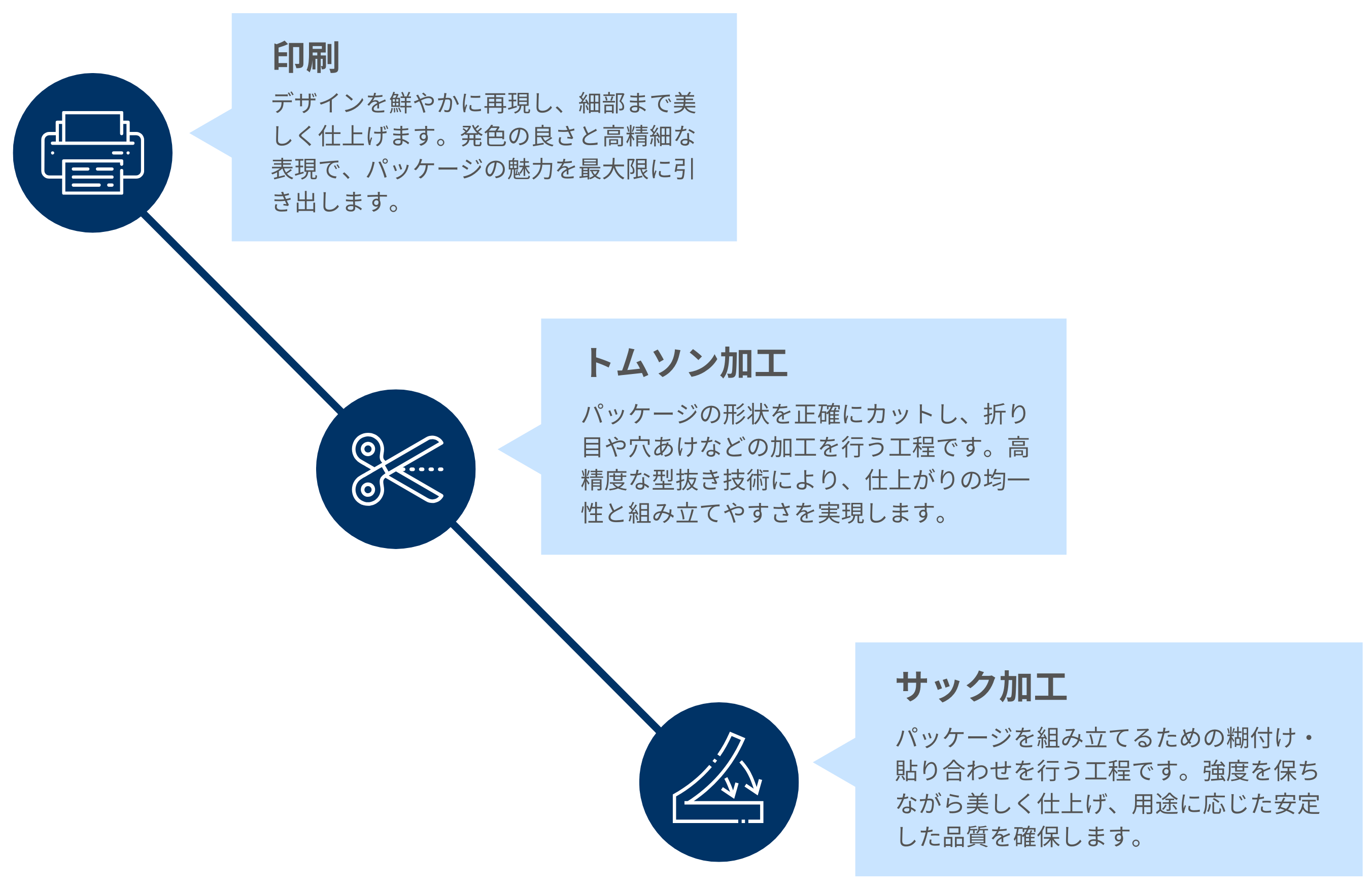製品の顔となる魅力的なパッケージデザインと高品質印刷をご提供します。商品の価値を最大限に引き出し、店頭での存在感を高める包装ソリューションをカスタムメイドでお届けします。